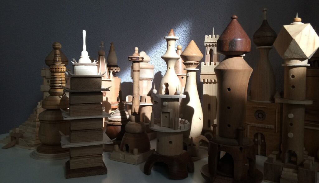 In de tentoonstelling ‘van boom naar fantasie’ zijn houten maquettes te zien, gemaakt door Marten Boonstra. Zijn interesse in verschillende exotische culture geschiedenissen en de bijbehorende architectuur, zet Boonstra om in fantasierijke bouwsels die elk een eigen verhaal vertellen.